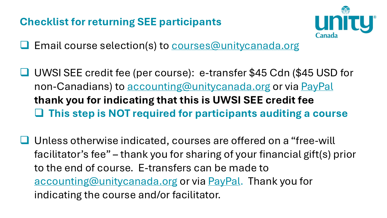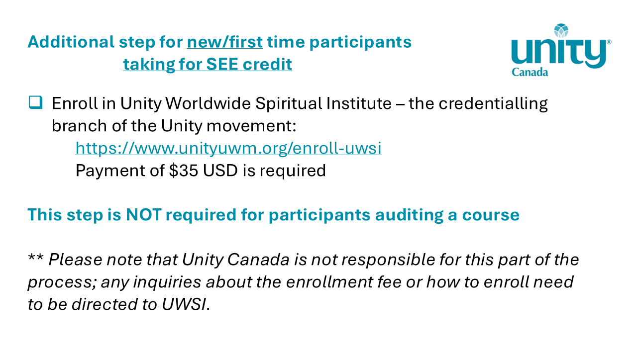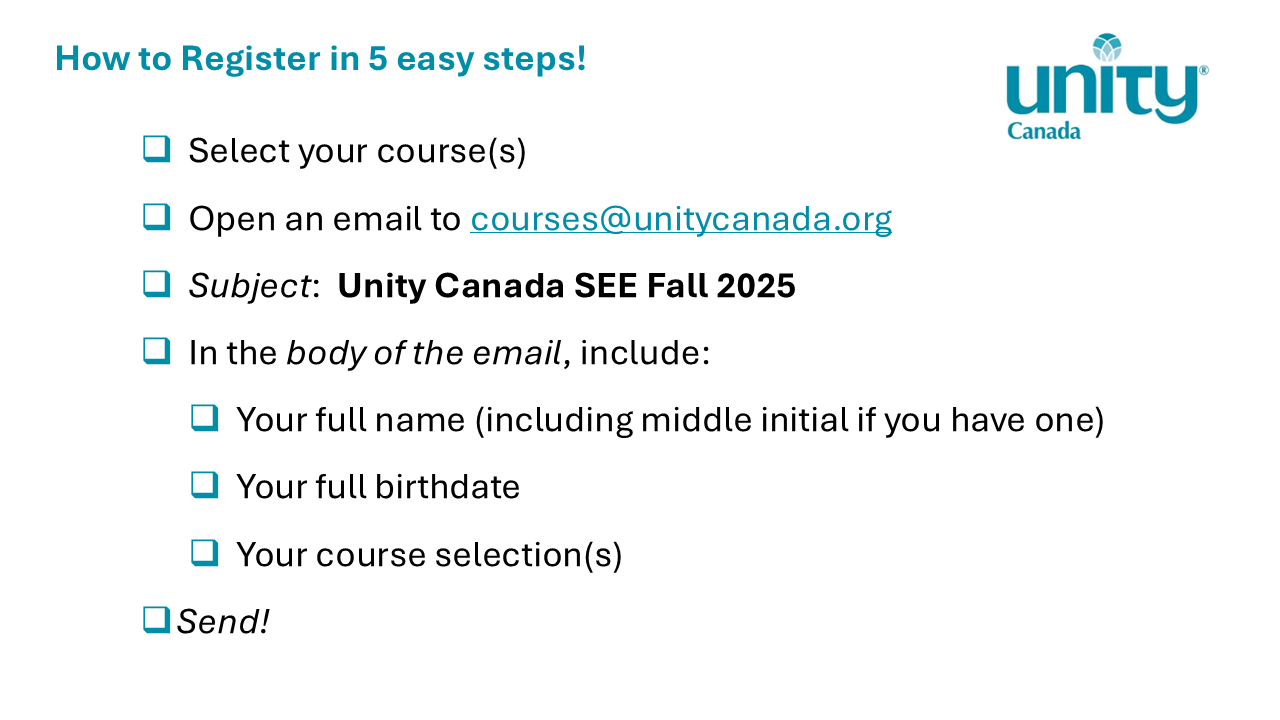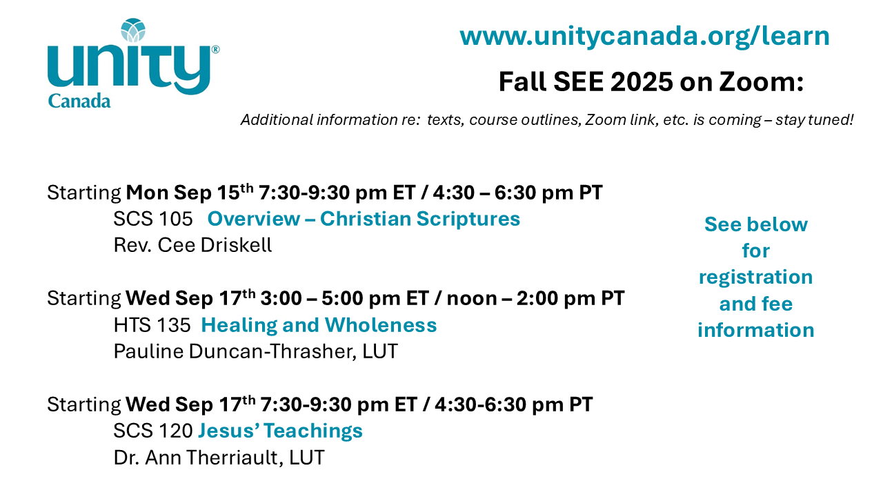 Unity Canada Fall 2025 SEE Courses on Zoom | ||